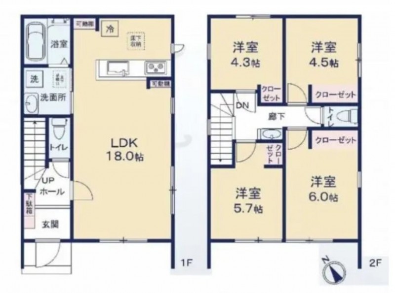 - システムキッチン、カウンターキッチン、浴室乾燥機、ペット可、駐車場2台分、床下収納、トイレ2箇所