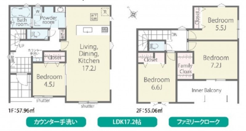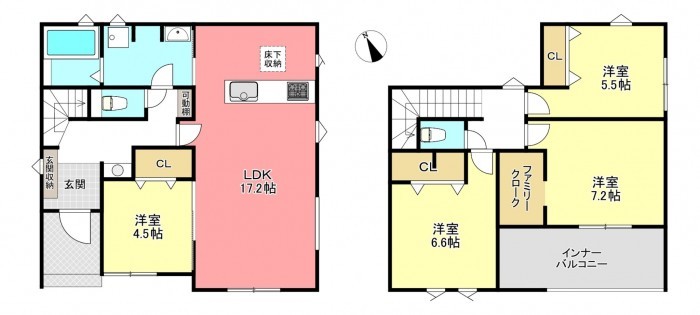 - システムキッチン、洗浄便座、浴室乾燥機、複層ガラス、ウォークインクローゼット、モニタ付インターホン、ペット可、駐車場2台分、床下収納、トイレ2箇所