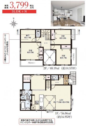 月々支払例:105,917円* *35年ローン / 金利0.925%の場合 ※審査により金利は変わる可能性があります。