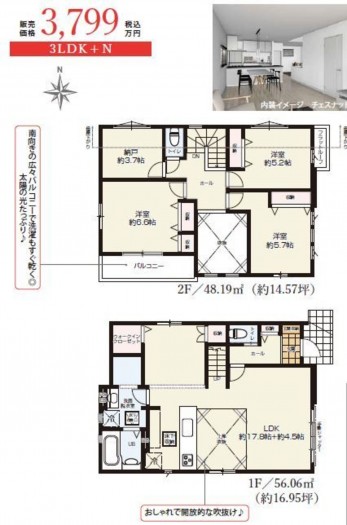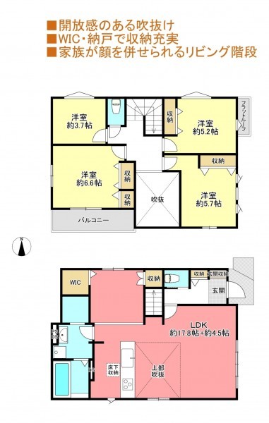 - システムキッチン、食器洗浄乾燥機、浴室乾燥機、追い焚き、ウォークインクローゼット、モニタ付インターホン、ペット可、1BOX駐車可、駐車場2台分、床下収納、トイレ2箇所