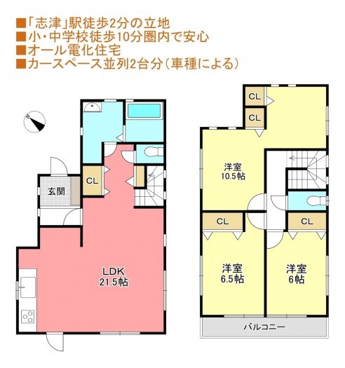 - システムキッチン、オール電化、浴室乾燥機、追い焚き、ペット可、駐車場2台分、床下収納、トイレ2箇所