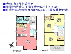 - システムキッチン、カウンターキッチン、洗浄便座、追い焚き、複層ガラス、ウォークインクローゼット、モニタ付インターホン、ペット可、1BOX駐車可、駐車場2台分、床下収納、トイレ2箇所