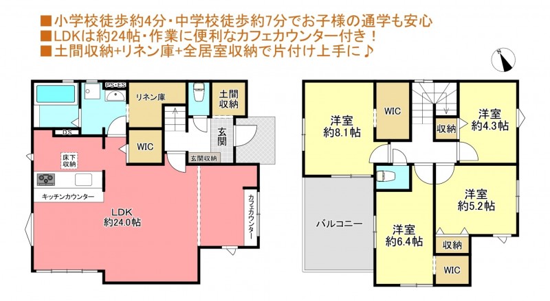 ■小学校徒歩約4分・中学校徒歩約7分でお子様の通学も安心