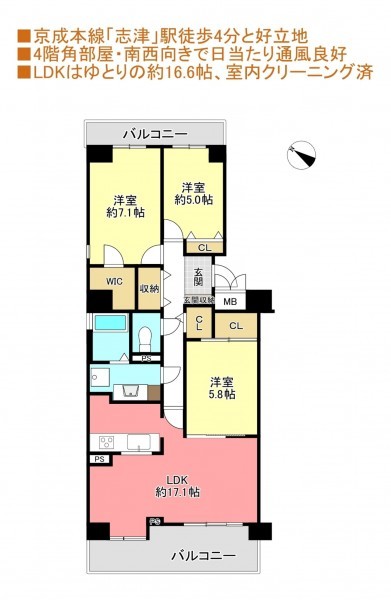 ■志津駅徒歩5分につき通勤・通学に便利な立地