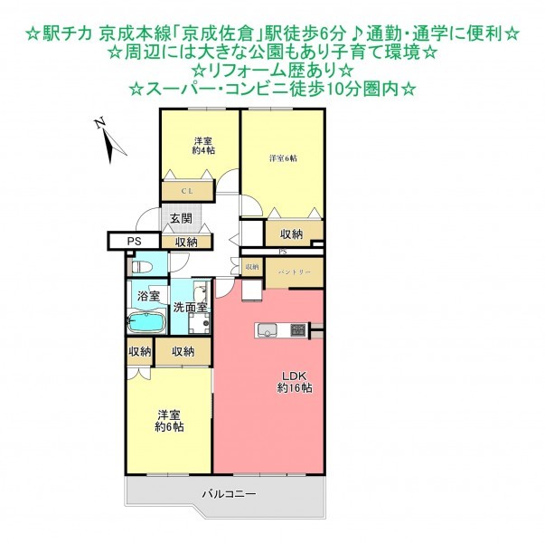 ☆駅チカ 京成本線「京成佐倉」駅徒歩6分♪通勤・通学に便利☆